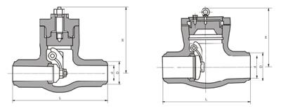 H64Y typ 1500 (Lb) ~ 2500 (Lb) zpětný ventil pro vysokoteplotní svařování na tupo pro třídu 1500 ~ 2500 Lb, provozní teplota -29 ~ 570 ℃ ropné, chemické, tepelné elektrárny a další podmínky potrubí.